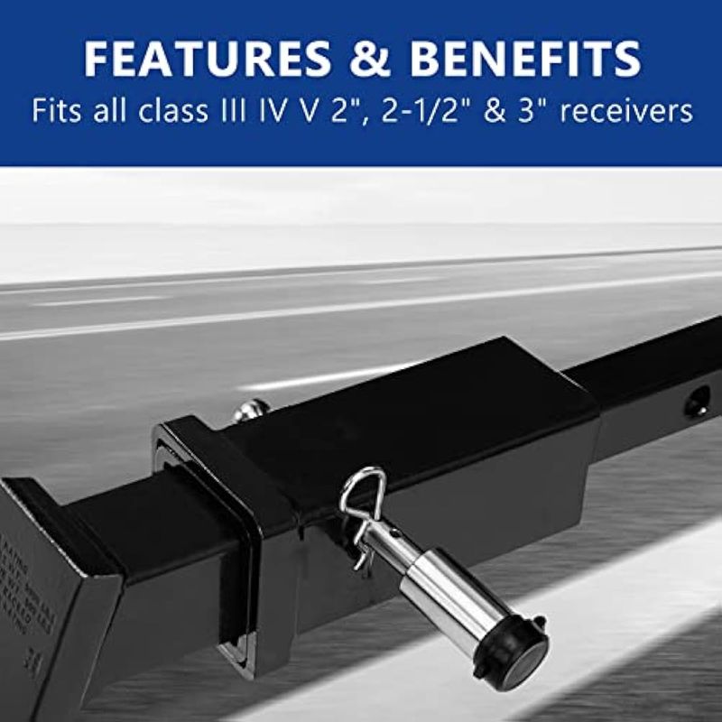 Compatibilidad universal: pasador de enganche de bloqueo de acero inoxidable de 58 pulgadas de diámetro con longitud efectiva de 4 pulgadas, perfecto para receptores de enganche de clase III IV V de 2 pulgadas, 2.5 pulgadas y 3 pulgadas. El pasador de enganche de bloqueo también se puede utilizar para la cuerda de remolque de bandeja, camión, automóvil y barco.