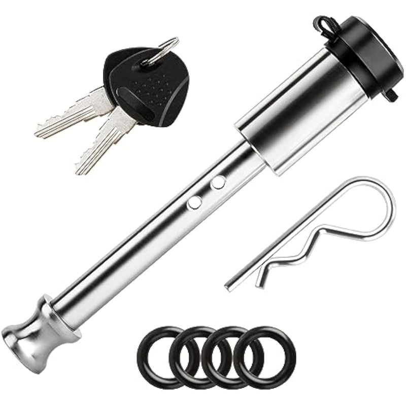 METOWARE CERRADURA DE ENGANCHE DE ACERO INOXIDABLE RESISTENTE, BLOQUEO DE ENGANCHE DE REMOLQUE DE 5/8 PULGADAS DE DIáMETRO Y 4 PULGADAS DE LARGO CON CLIP PARA ENGANCHES DE CLASE III IV DE 2 PULGADAS, 2-1/2 PULGADAS Y 3 PULGADAS, PASADOR DE ENGANCHE DE BLOQUEO CON JUNTAS TóRICAS PARA REMOLQUE, CAMIóN, AUTOMóVIL, BARCO