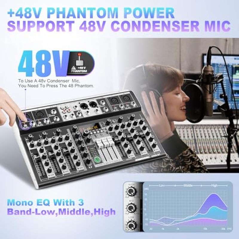 Mezclador de audio de 8 canales, mezclador de DJ, consola de tablero de sonido, 16 Dsp, interfaz de