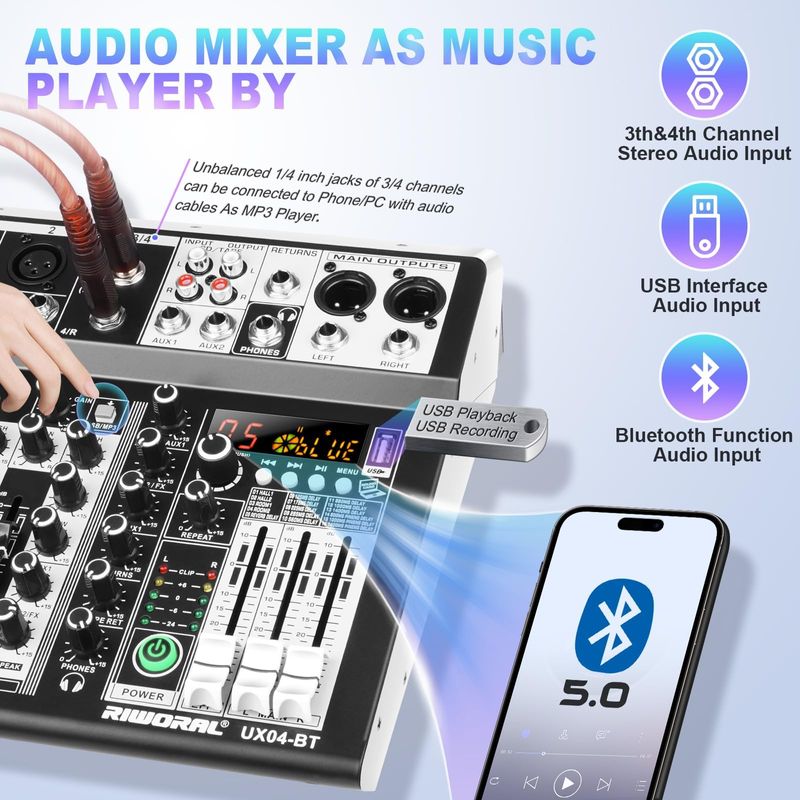 AUDIOConsola DJMezclador de audio de 8 canales, mezclador de DJ, consola de tablero de sonido, 16 Dsp, interfaz de