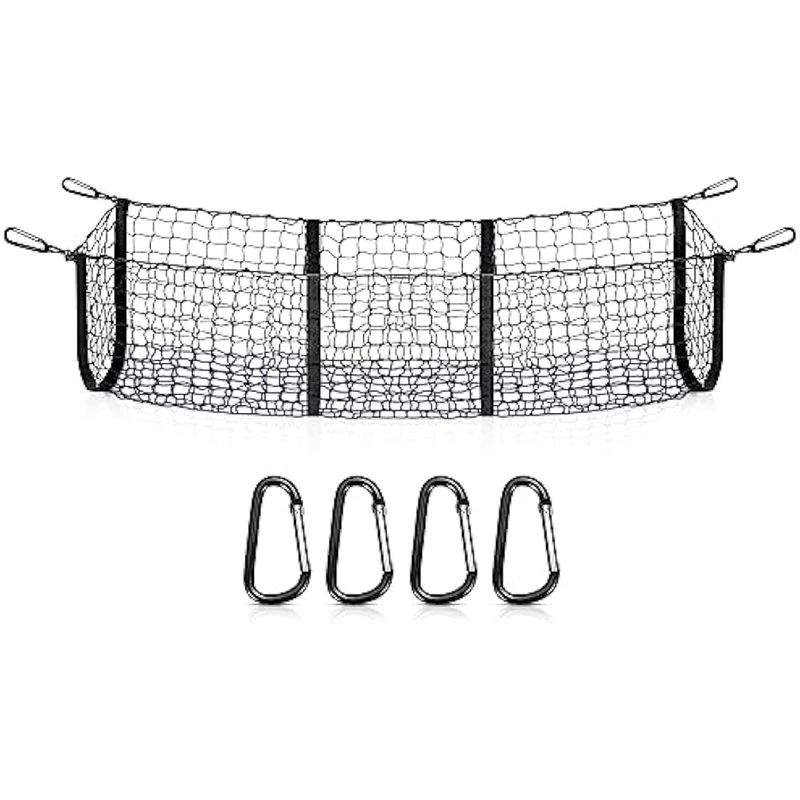 Componentes incluidos: 1 red de almacenamiento organizador de carga; 4 mosquetones de metal