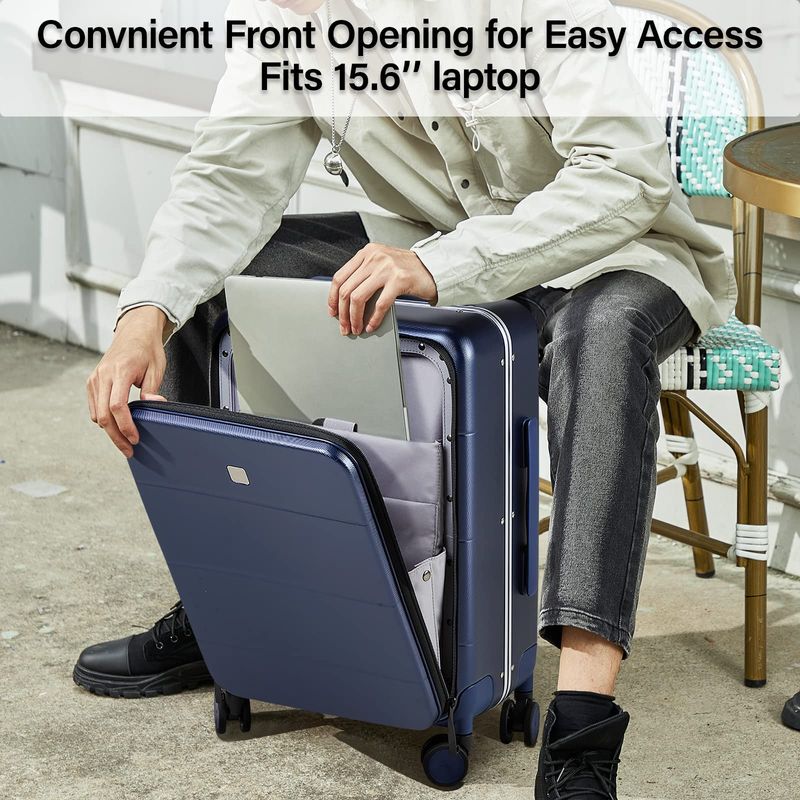 Apertura frontal: con compartimento frontal para laptop para acceder rápidamente a la electrónica, como laptop de 15.6 pulgadas, iPad, carpeta y artículos más urgentes. El marco de aluminio hace que la maleta sea más resistente solo acceso frontal. El equipaje de mano de 20 pulgadas con bolsillo frontal para portátil es de 13.81 x 9.25 x 21.46 pulgadas, 7.93 libras, 40.4 L de capacidad.