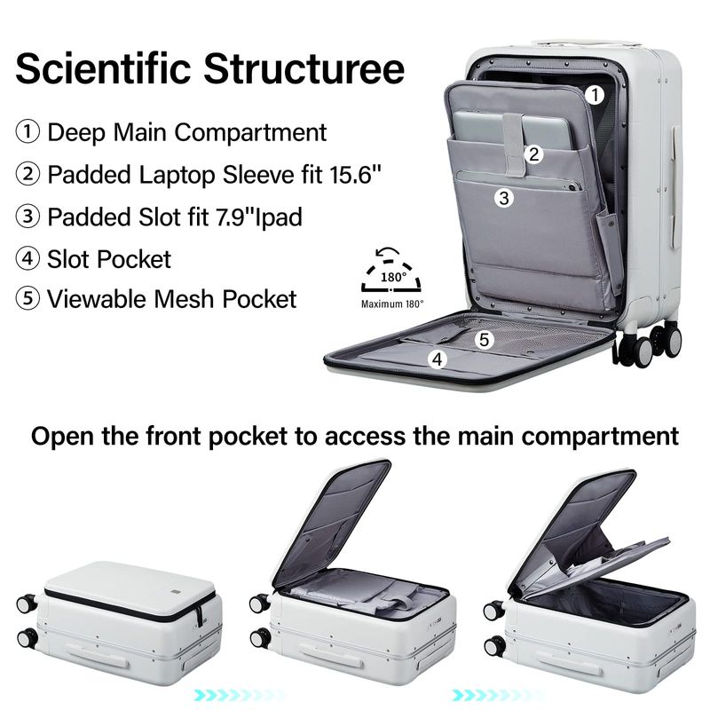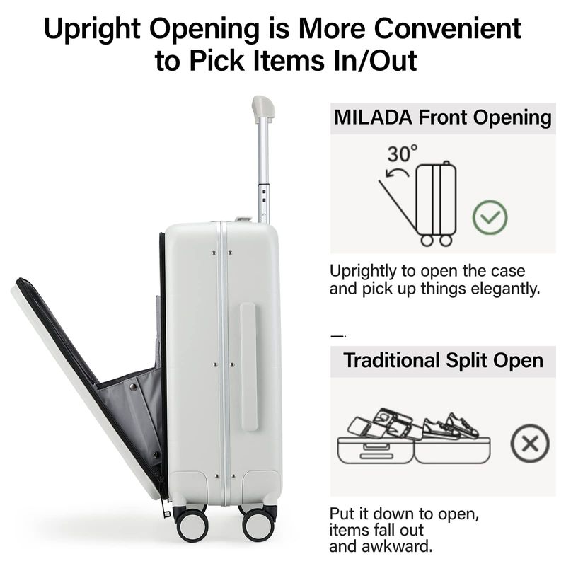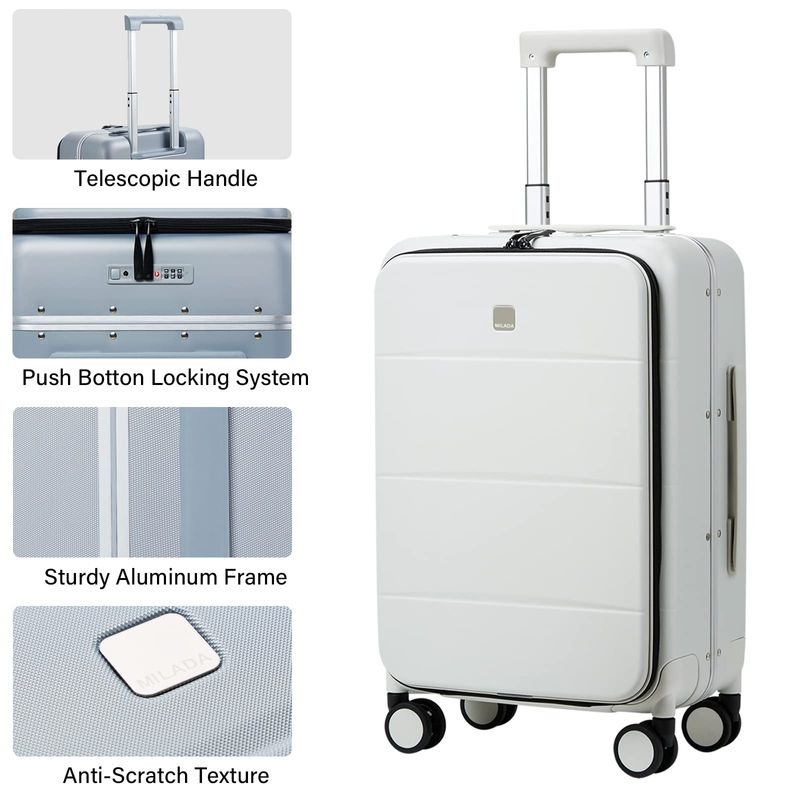 MILADA Maleta de equipaje con bolsillo frontal para laptop, equipaje de mano de 18 pulgadas, 20