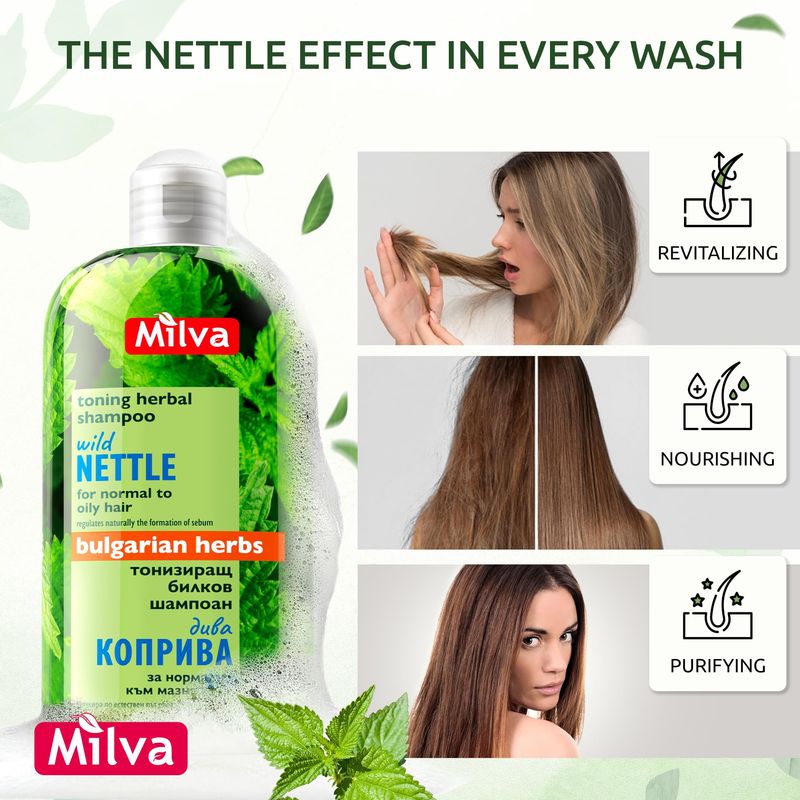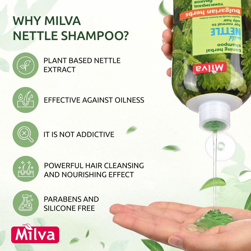 Milva Champú de ortiga para cabello graso - 6.8 fl oz Champú natural para cabello graso para raíces