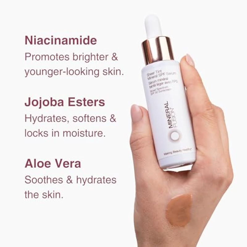 BELLEZA Y SALUDBELLEZA Y CUIDADO CORPORALMAQUILLAJEMineral Fusion Suero facial Sheer Tint Mineral SPF Serum, 1 onza líquida, mediano, protector solar