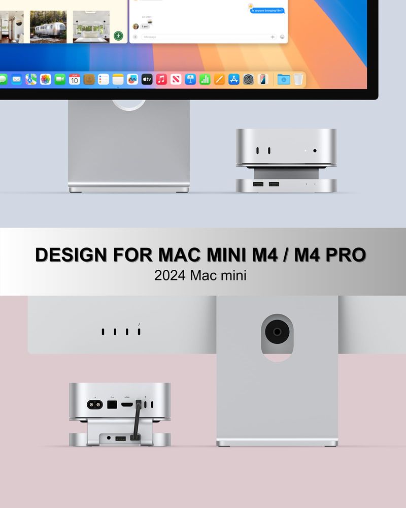 Diseño único tecnología patentada para Mac Mini M4 y M4 Pro 2024: este duradero concentrador USB C está fundido con acceso aerodinámico de aluminio antihuellas con puertos frontales que hacen que la conectividad sea muy fácil. También está diseñado con el agujero para poner y apagar fácilmente el botón del Mac Mini. Cable reforzado incorporado para conectar el hub con Mac Mini M4 en la parte posterior, como núcleo de cobre puro estañado y blindado múltiple en el interior. Compatible con M4 M4 Pro Mac Mini, Mac Mini 2024. Convierte tu Mac Mini M4 en una completa herramienta de productividad.