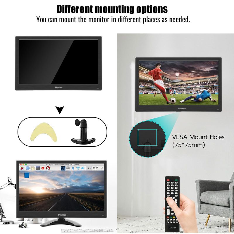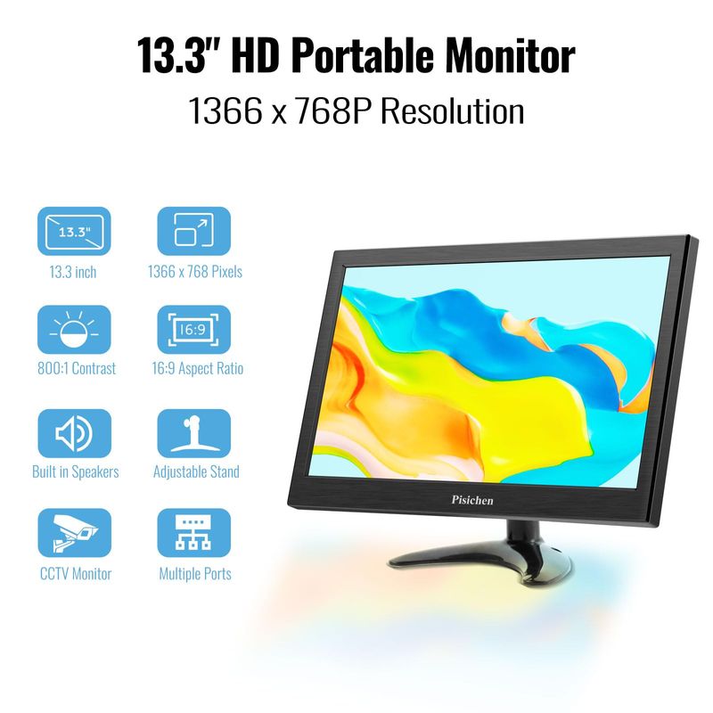 INFORMÁTICAMONITORESMini monitor HDMI portátil de 13.3 pulgadas, 1366x768 LED, HDMI/VGA/USB/AV/BNC entrada para