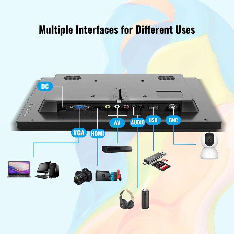 Mini monitor HDMI portátil de 13.3 pulgadas, 1366x768 LED, HDMI/VGA/USB/AV/BNC entrada para