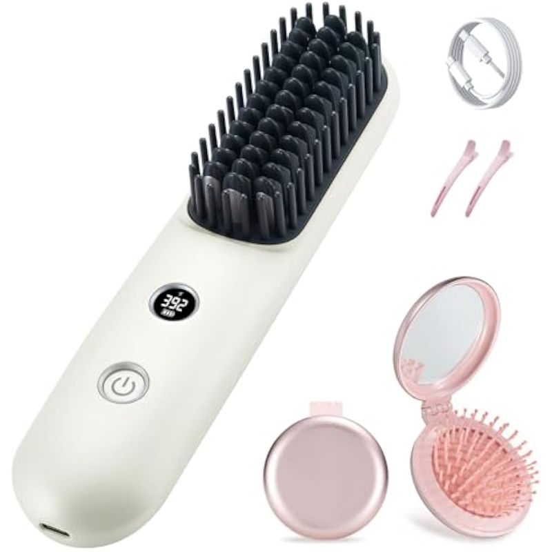 BELLEZA Y SALUDCUIDADO PERSONALPLANCHITASMini peine de viaje portátil inalámbrico negativo iónico caliente para mujer, plancha de pelo y