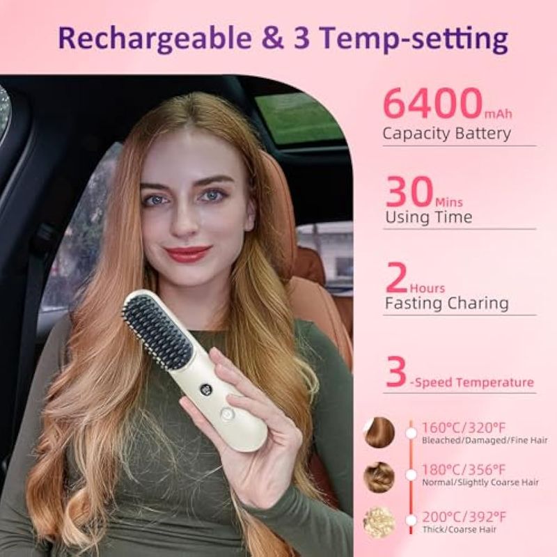 Mini peine de viaje portátil inalámbrico negativo iónico caliente para mujer, plancha de pelo y
