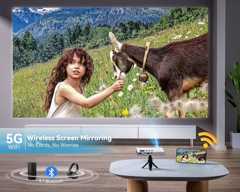 Mini proyector 4K, GooDee 1080P soporte de bolsillo DLP proyector con WiFi y Bluetooth, proyector de