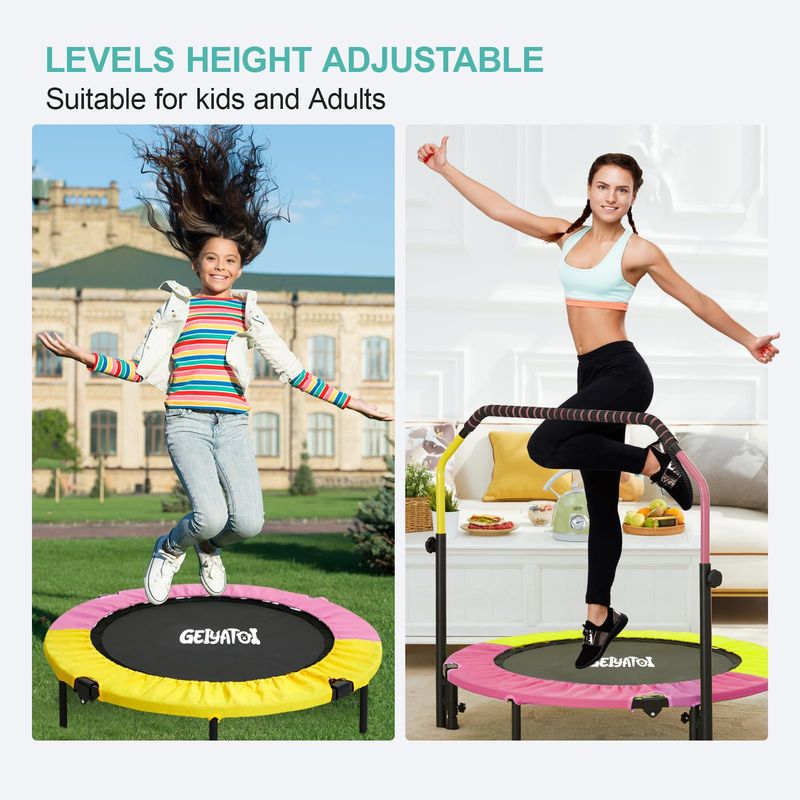 MINI TRAMPOLíN PLEGABLE DE 40 PULGADAS CON MANGO DE ESPONJA, 38 A 46 PULGADAS, MINI TRAMPOLíN DE ALTURA AJUSTABLE PARA NIñOS ADULTOS, CUBIERTA ACOLCHADA DE SEGURIDAD PARA NIñOS PEQUEñOS, TRAMPOLíN REBOTE PARA ENTRENAMIENTO EN INTERIORES Y JARDINES, CARGA MáXIMA DE 330 LIBRAS