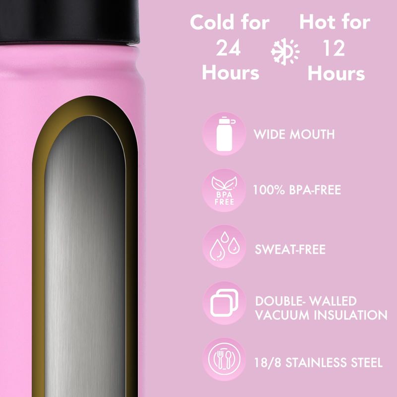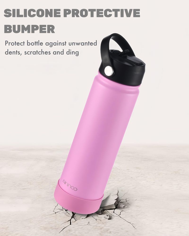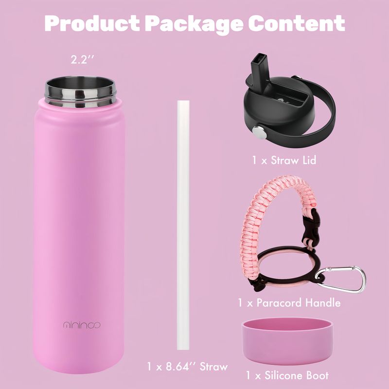 Mininoo Botella de agua de 32 onzas con aislamiento al vacío con pajilla, termo de acero inoxidable