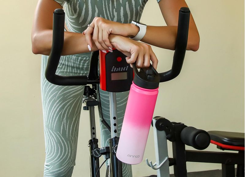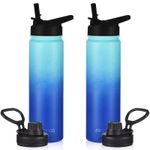 Mininoo Botella de agua de 32 onzas con aislamiento al vacío con pajilla, termo de acero inoxidable