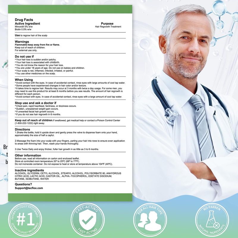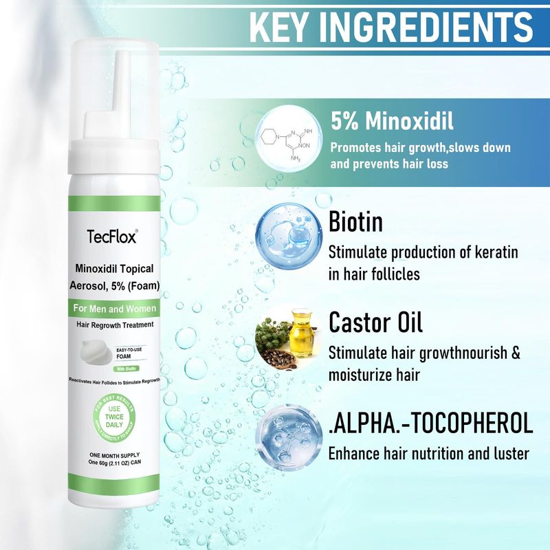 BELLEZA Y SALUDBELLEZA Y CUIDADO CORPORALCUIDADO CAPILARMinoxidil Foam - 5% de mininoxidil para hombres y mujeres, crecimiento del cabello y la barba con