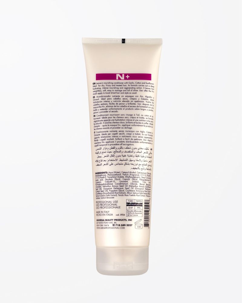 BELLEZA Y SALUDBELLEZA Y CUIDADO CORPORALCUIDADO CAPILARMirna Professional N+ Acondicionador nutritivo sin enjuague con ajo con algodón y aceite de girasol