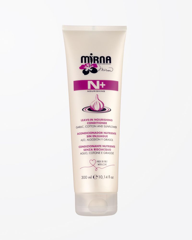 Mirna Professional N+ Acondicionador nutritivo sin enjuague con ajo con algodón y aceite de girasol