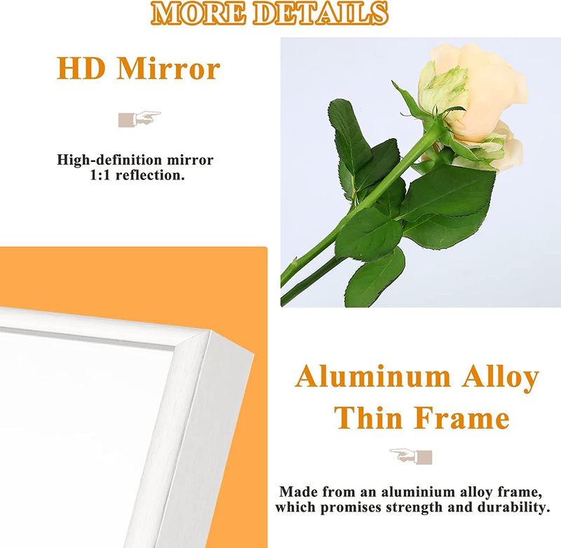 Decoración elegante y moderna: nuestro espejo de pie está acabado con un marco de aleación de aluminio lineal, que crea un acabado elegante. El espejo de gran tamaño es muy llamativo en cualquier espacio y hace que tu habitación se vea de buen gusto.