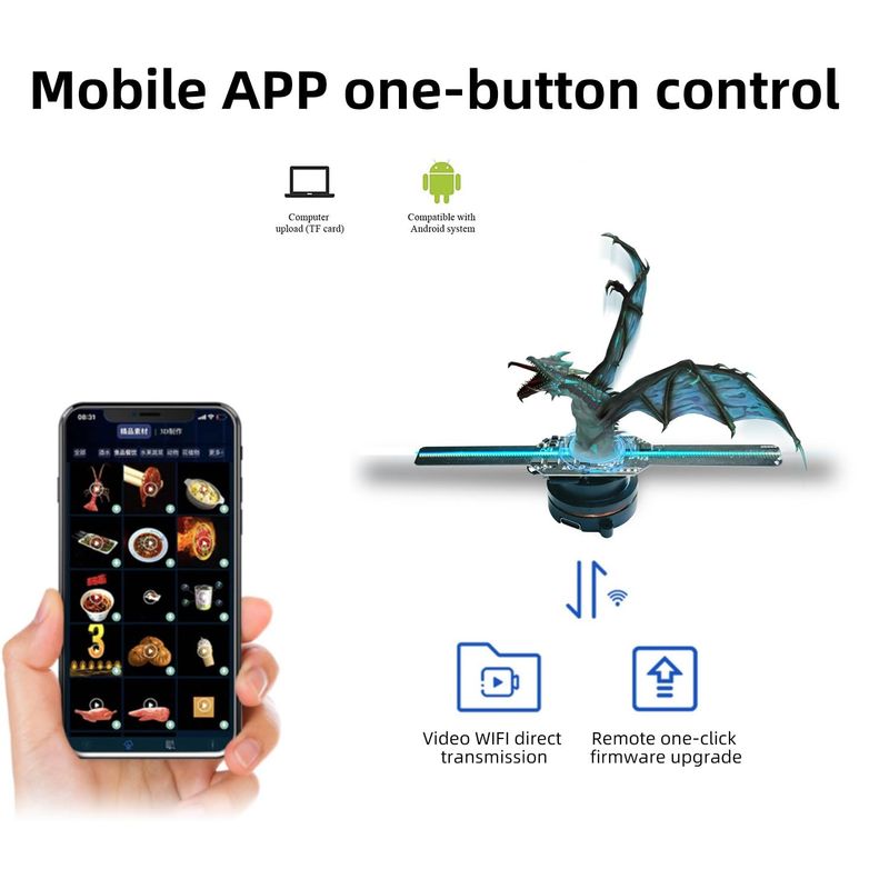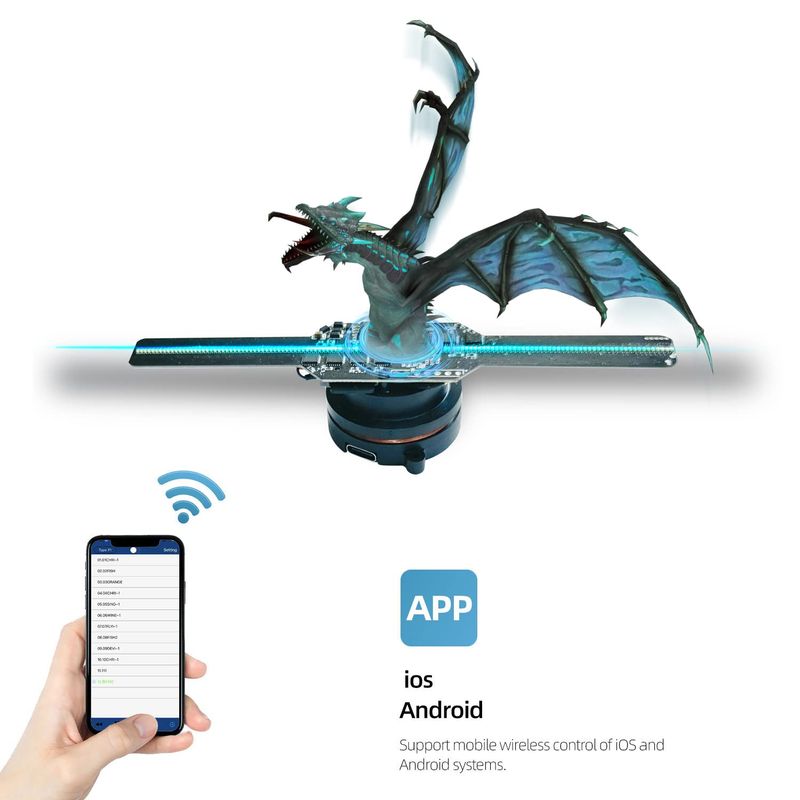 Missyou Proyector de ventilador con holograma 3D, pantalla holográfica LED Wi-Fi de 5.5 pulgadas,