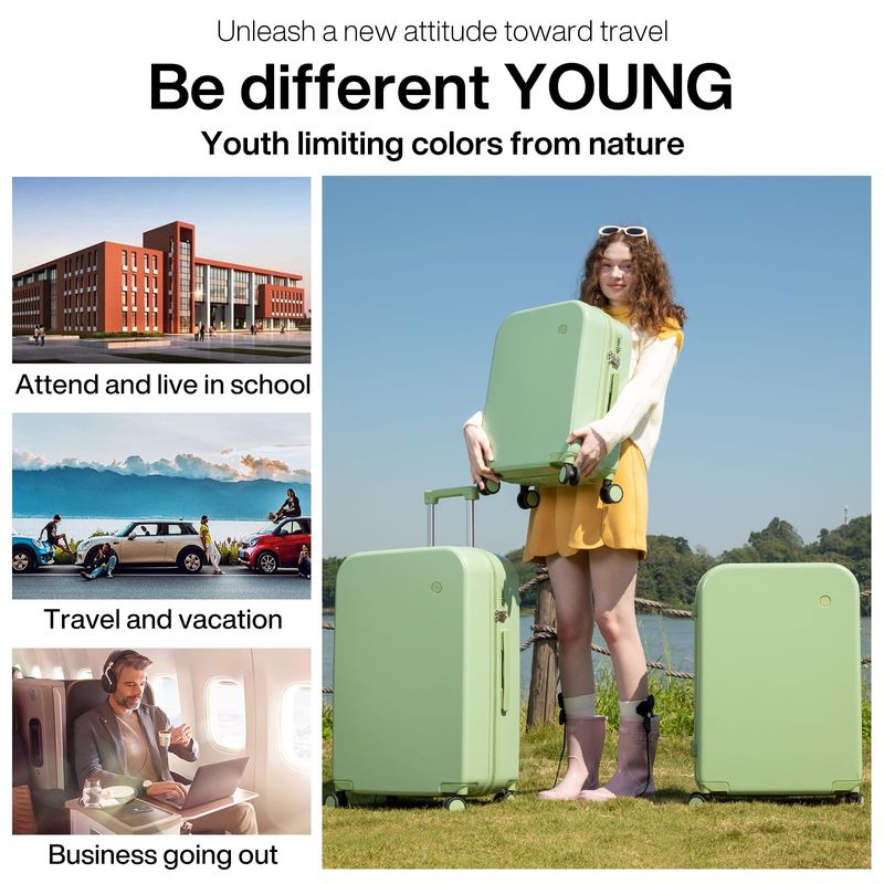 Maleta simple y de moda, combinada con material de policarbonato Bayer de tres capas denominado "acero suave" por su carcasa rígida, lo que hace que el equipaje sea duradero, portátil y más ligero que las maletas de plástico ABS o de plástico ABS + policarbonato. El color de esta maleta rígida con ruedas de la serie es moderno y brillante, y está disponible en 16, 20, 22, 24, 26 y 28 pulgadas. Comprueba nuestra tabla de tamaños cuidadosamente antes de realizar tu pedido y elige el tamaño adecuado para el próximo viaje.