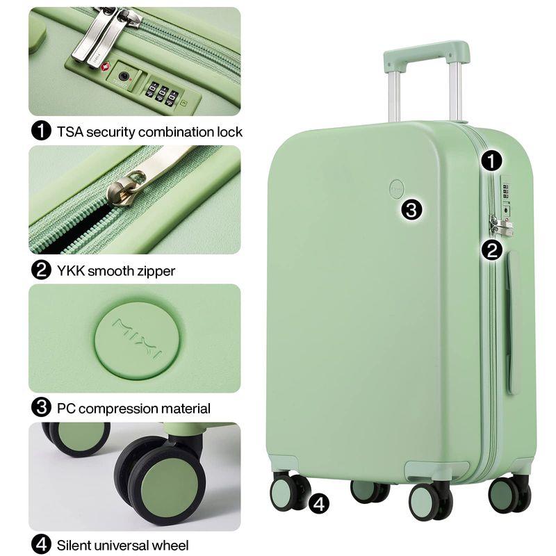 Mixi - Maleta con ruedas giratorias, de policarbonato, rígida, con cubierta y cerradura TSA, estuche