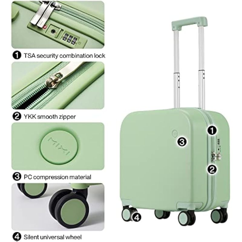 Mixi - Maleta con ruedas giratorias, de policarbonato, rígida, con cubierta y cerradura TSA, estuche