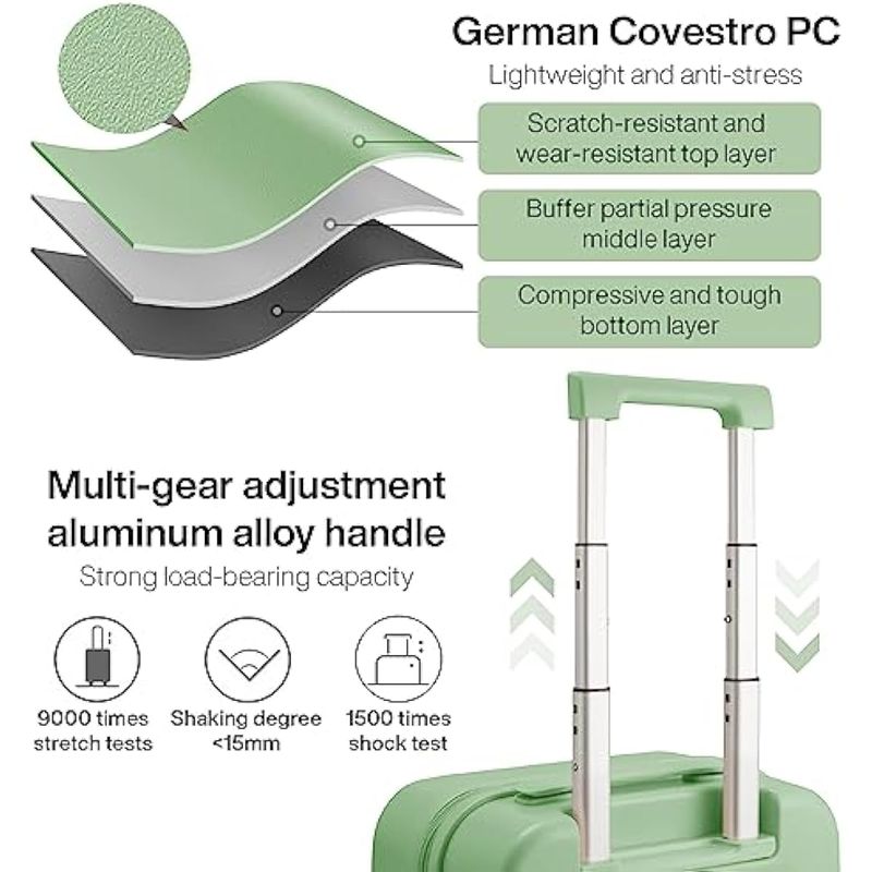 La cremallera YKK de alta calidad no es fácil de perforar con herramientas afiladas, y utiliza 5 hebras para proteger los dientes de la cremallera, suave y duradera. Cerradura inteligente TSA que protege mejor tus cosas en el equipaje y la privacidad cuando viajas. Esta maleta rígida está equipada con una cubierta de PVC transparente personalizada para resistencia al agua y protección contra rasguños accidentales.