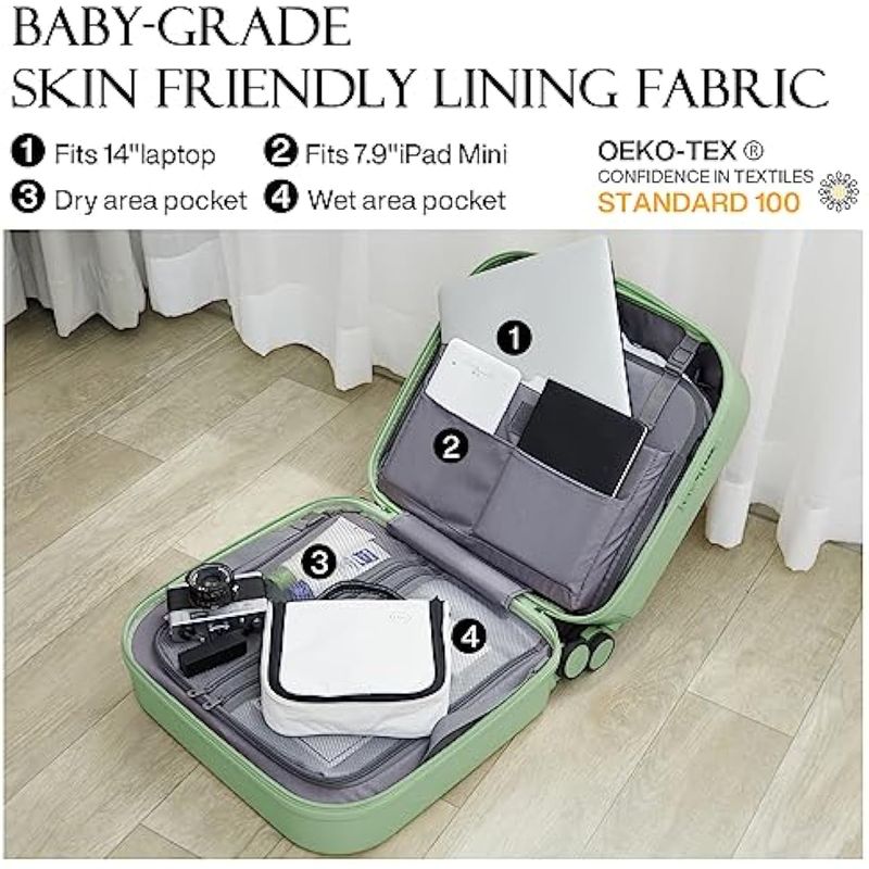Maleta simple y de moda, combinada con material de policarbonato Bayer de tres capas denominado "acero suave" por su carcasa rígida, lo que hace que el equipaje sea duradero, portátil y más ligero que las maletas de plástico ABS o de plástico ABS + policarbonato. El color de esta maleta rígida con ruedas de la serie es moderno y brillante, y está disponible en 16, 20, 22, 24, 26 y 28 pulgadas. Comprueba nuestra tabla de tamaños cuidadosamente antes de realizar tu pedido y elige el tamaño adecuado para el próximo viaje.