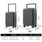 MIXI MALETA DE LUJO DE MANGO ANCHO PARA EQUIPAJE DE MANO DE PC DE LADO DURO CON MARCO DE ALUMINIO PARA PORTáTIL ABIERTO FRONTAL, GRIS (ROCK GREY), 20 - PULGADAS