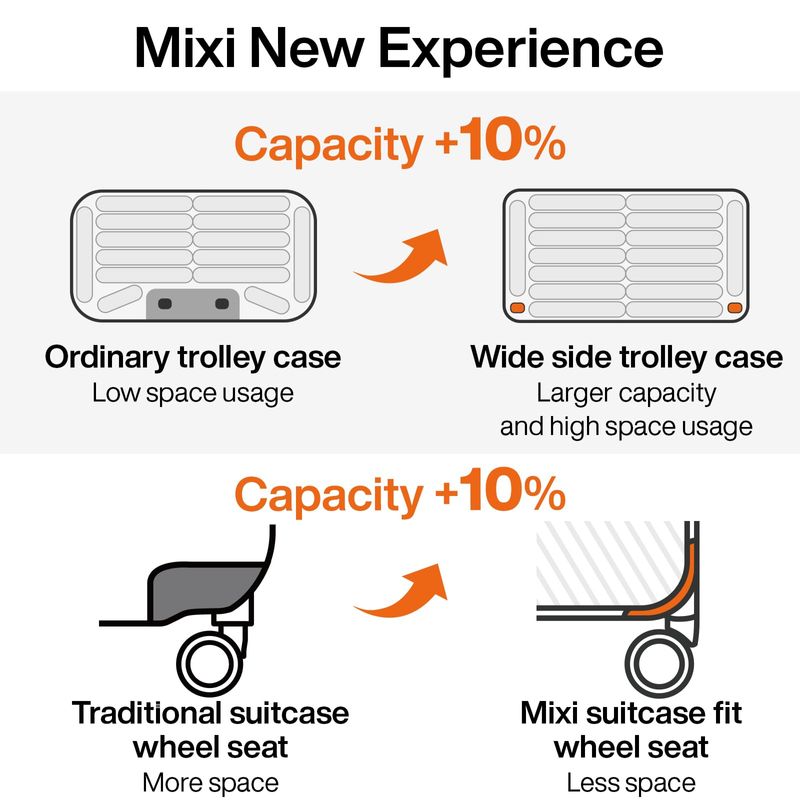 Maleta de la serie Mixi: el mango telescópico de equilibrio amplio es más práctico de usar. No ocupa ningún espacio de uso de la maleta, ya que se instala en el borde. Además, rechaza las "pistas de ferrocarril" en tu ropa.