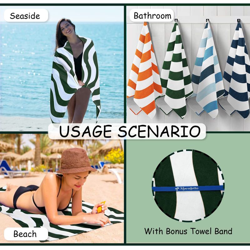 Mocaletto Toalla de playa 100% algodón con banda de toalla (paquete de 2), toallas de playa de gran