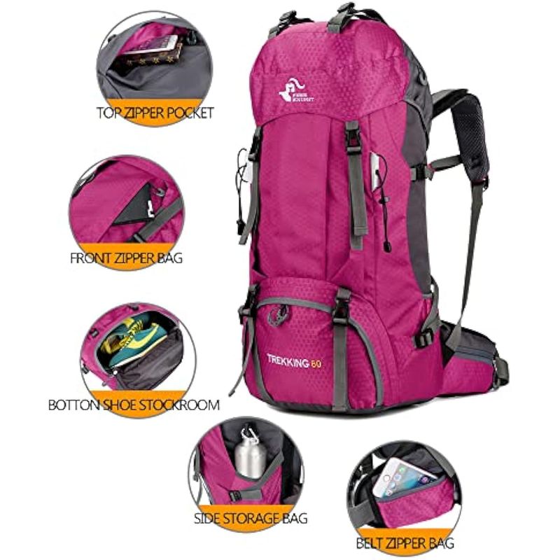 MOCHILA DE SENDERISMO LIGERA IMPERMEABLE DE 60 L CON CUBIERTA DE LLUVIA, MOCHILA DEPORTIVA PARA VIAJES AL AIRE LIBRE PARA ESCALAR, CAMPAMENTO, VIAJES
