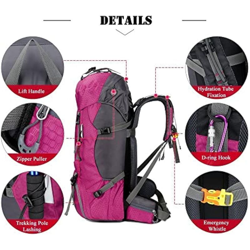Mochila de senderismo ligera impermeable de 60 L con cubierta de lluvia, mochila deportiva para