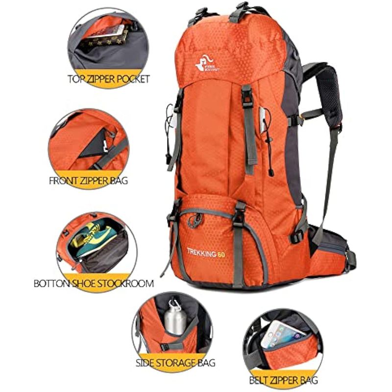 MOCHILA DE SENDERISMO LIGERA IMPERMEABLE DE 60 L CON CUBIERTA DE LLUVIA, MOCHILA DEPORTIVA PARA VIAJES AL AIRE LIBRE PARA ESCALAR, CAMPAMENTO, VIAJES