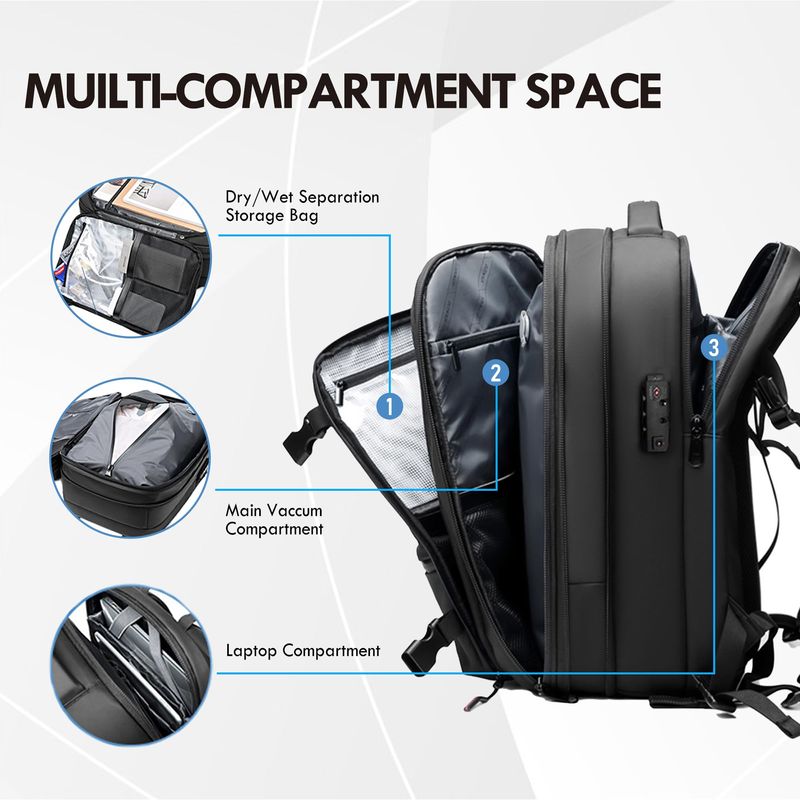 [Tamaño de equipaje] ¿El paquete de vacío superará el límite de tamaño en la puerta? De ninguna manera, a pesar de su enorme capacidad, su tamaño permanece como una mochila de transporte, mide 20 x 12 x 7.8 pulgadas, embarque de aerolíneas sin complicaciones, sin cargos adicionales de equipaje; la cerradura de combinación TSA mantendrá tu propiedad segura y protegida