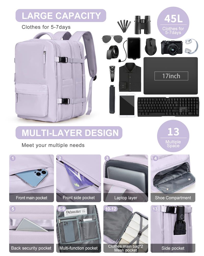Mochila de viaje grande para mujer, mochila de transporte, mochila de senderismo impermeable,