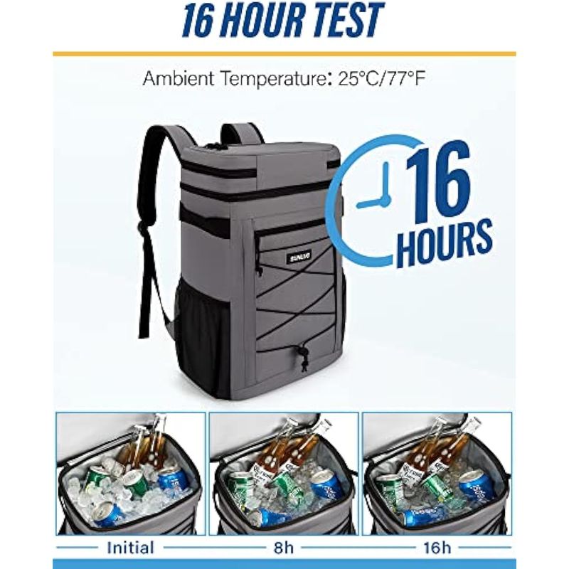 Con aislamiento de alta densidad y forro a prueba de fugas, nuestras mochilas enfriadoras están bien aisladas y pueden mantener la comida fría hasta 16 horas cuando se utilizan con bolsas de hielo.