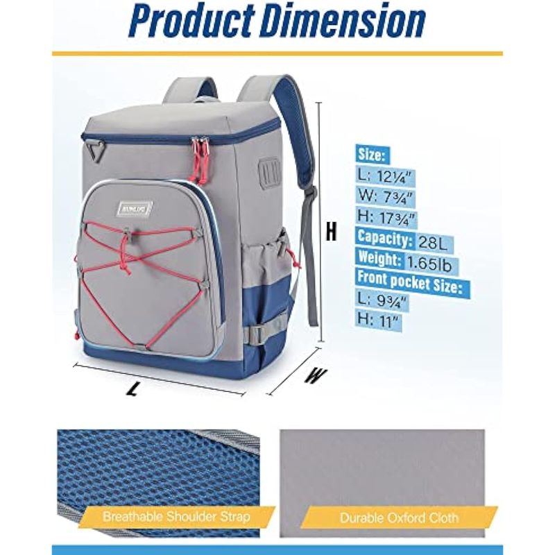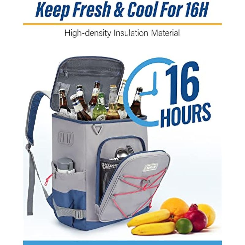 Aislamiento de 16 horas: el material de aislamiento de alta densidad y el forro a prueba de fugas de nuestra mochila enfriadora trabajan juntos para mantener la comida fría durante 16 horas con bolsas de hielo