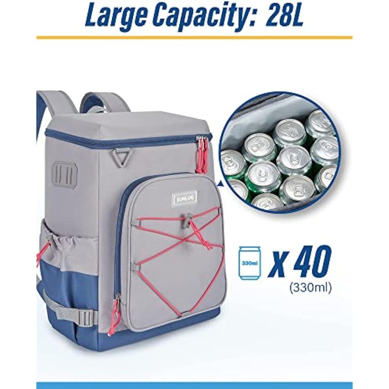 Gran capacidad: mide 12.3 x 7.8 x 17.8 pulgadas largo x ancho x alto y puede contener hasta 40 latas 11.2 fl oz, lo suficientemente espacioso como para empacar comidas, cervezas, bebidas altas, aperitivos y otras necesidades