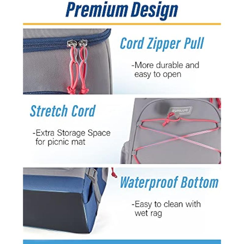 Múltiples funciones: nuestra mochila térmica tiene un diseño de correa elástica en la parte delantera para sostener tu tapete de picnic, 2 bolsillos laterales para guardar bebidas o paraguas, etc. Con respaldo acolchado ergonómico con paneles de malla transpirable y correas acolchadas ajustables para los hombros, esta mochila ligera es portátil y cómoda de llevar