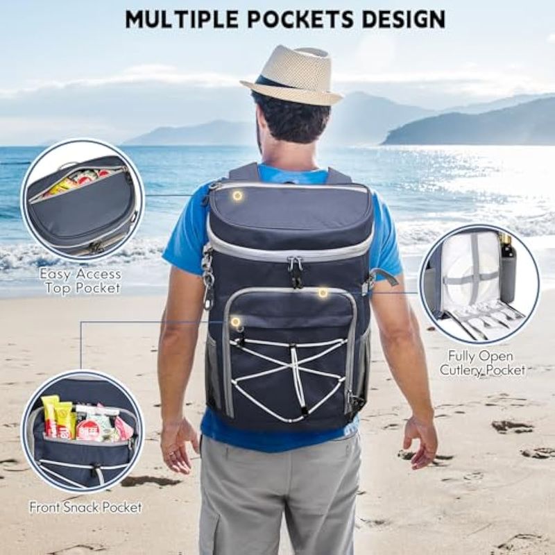 Mochila enfriadora, mochila térmica de 33 latas, aislada, a prueba de fugas, portátil, ligera, para