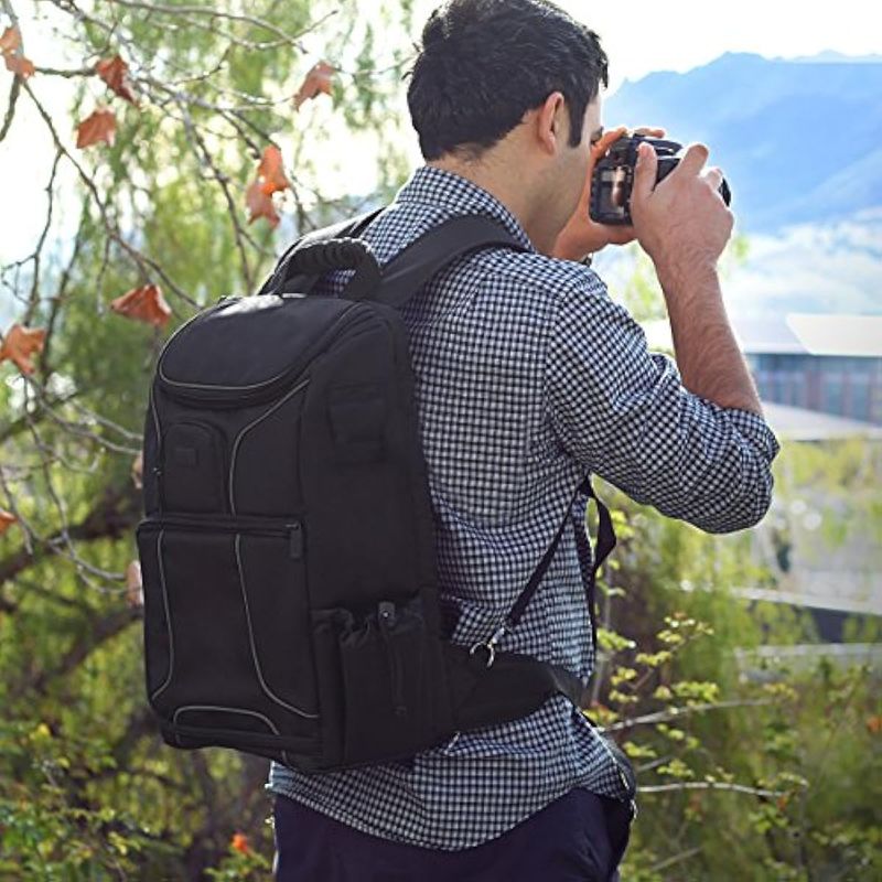 Mochila de cámara de mejor valor con características que normalmente se encuentran solo en paquetes de cámara más caros. Toneladas de espacio de almacenamiento personalizable, compartimento superior para adaptarse a tu teléfono, cargador y muchos otros accesorios