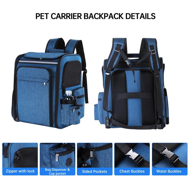 Mochila transportadora de viaje para mascotas, mochila transportadora de gatos de malla transpirable