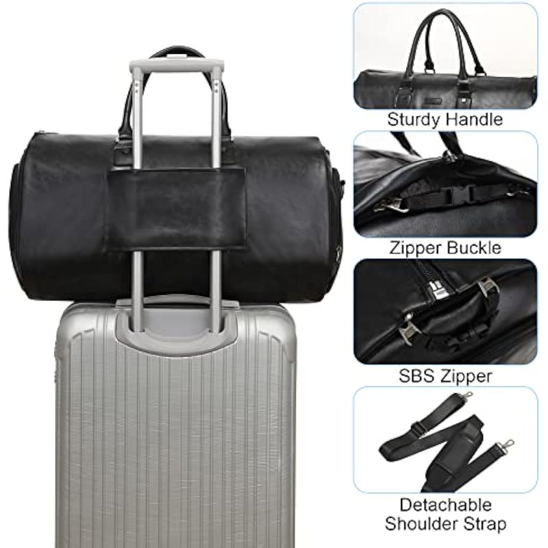 MODOKER BOLSA DE CUERO CONVERTIBLE PARA ROPA, BOLSAS DE MANO PARA VIAJES, BOLSA DE LONA IMPERMEABLE PARA ROPA, REGALOS PARA HOMBRES Y MUJERES, NEGOCIOS - MALETA COLGANTE 2 EN 1, BOLSAS DE VIAJE, NEGRO, MODOKER BOLSA DE ROPA DE CUERO CONVERTIBLE, BOLSAS DE ROPA DE TRANSPORTE PARA VIAJES