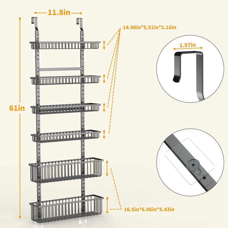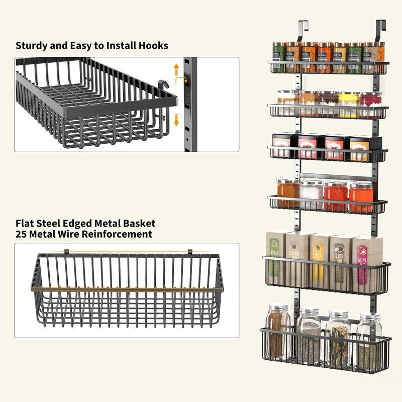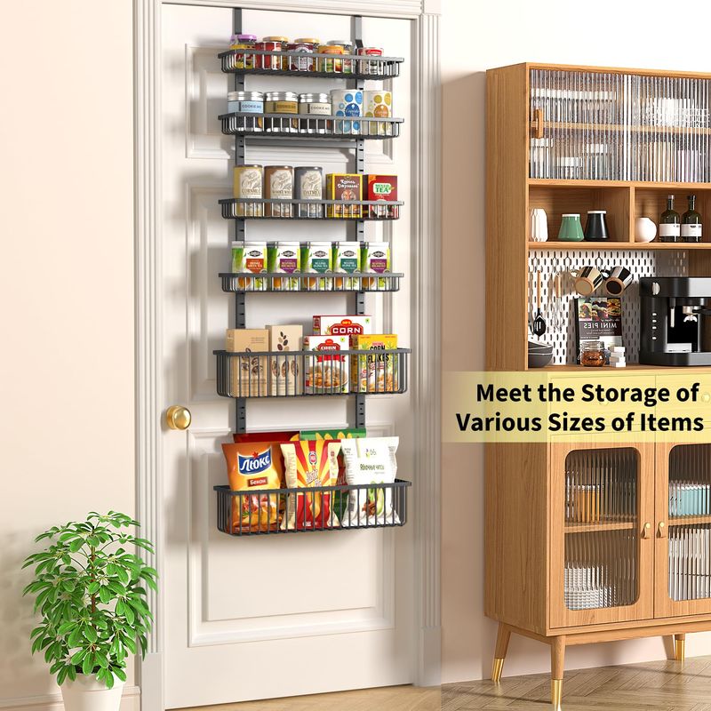 HOGARBAZARUTENSILIOS DE COCINAMoforoco Organizador de despensa sobre la puerta con cestas ajustables de 8 niveles, estante de