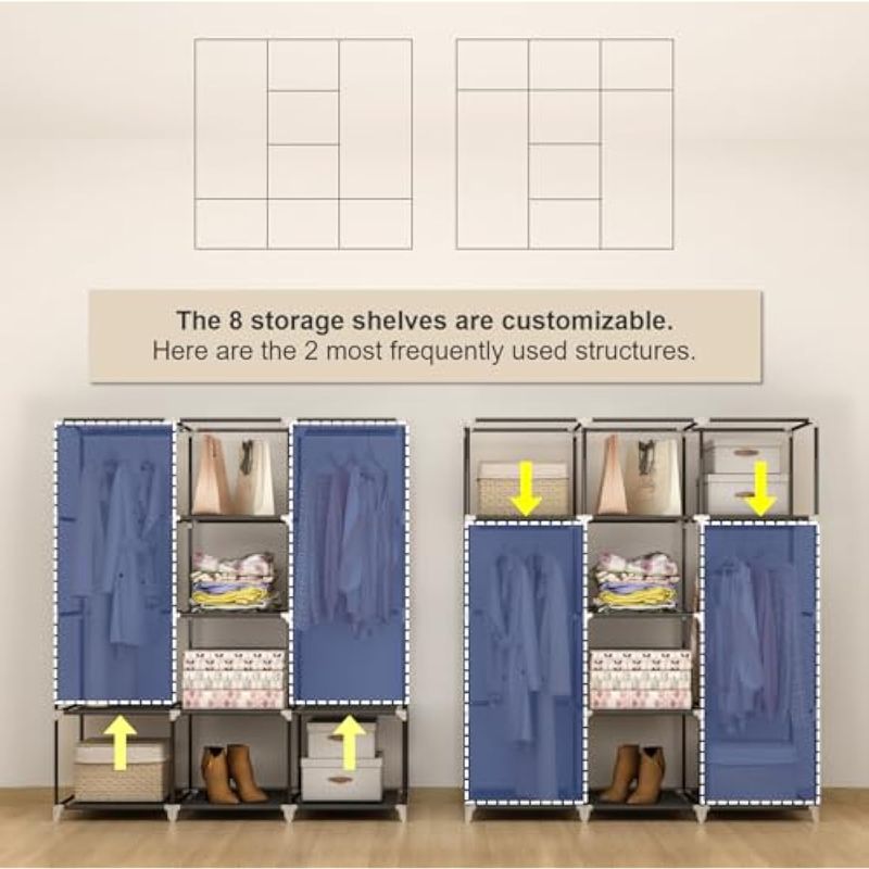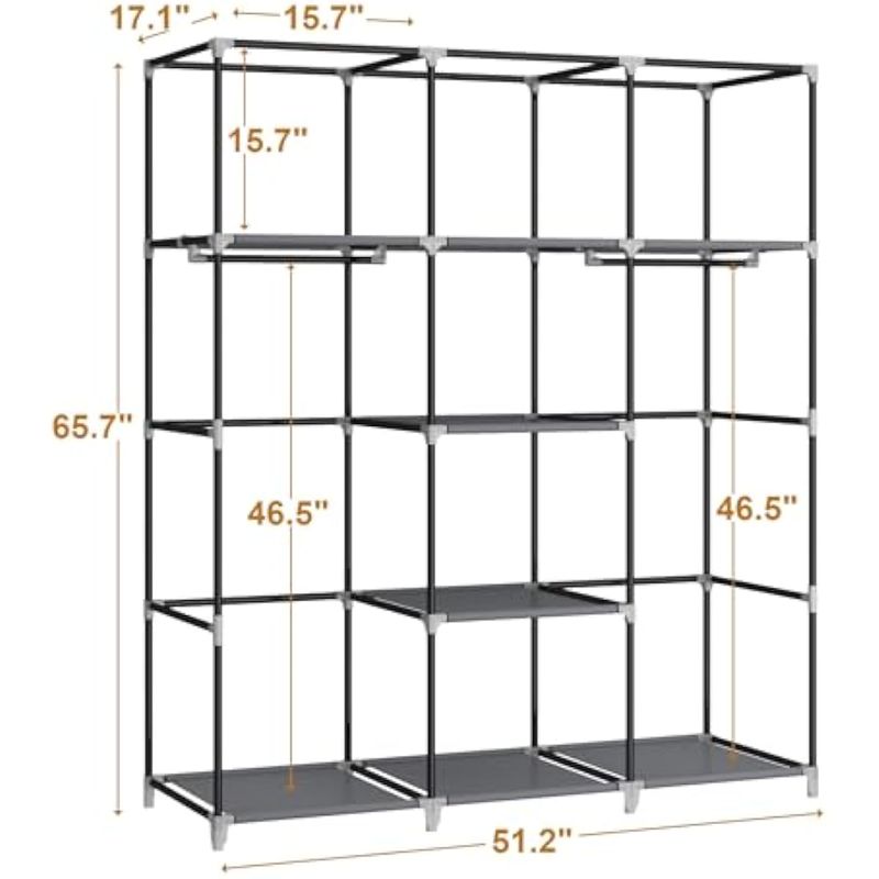 HOGARAMOBLAMIENTOMUEBLES DE DORMITORIOMOGELAFOO Armario portátil de 51 pulgadas, organizador de almacenamiento personalizable con tapa, 2