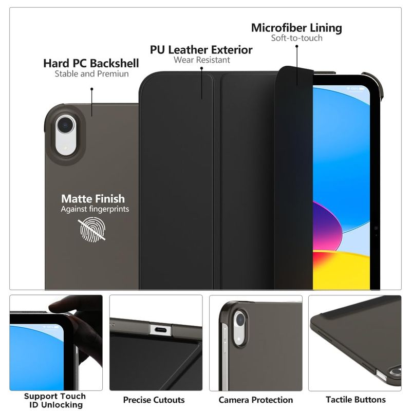 MoKo Funda para iPad de 10.9 pulgadas de 10.9 pulgadas 2022, funda protectora delgada de soporte con