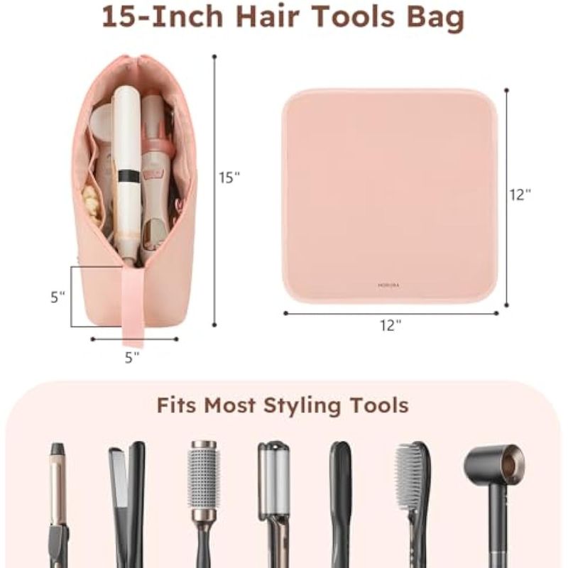 MOKURA Bolsa de viaje para herramientas de pelo caliente con alfombrilla resistente al calor,