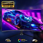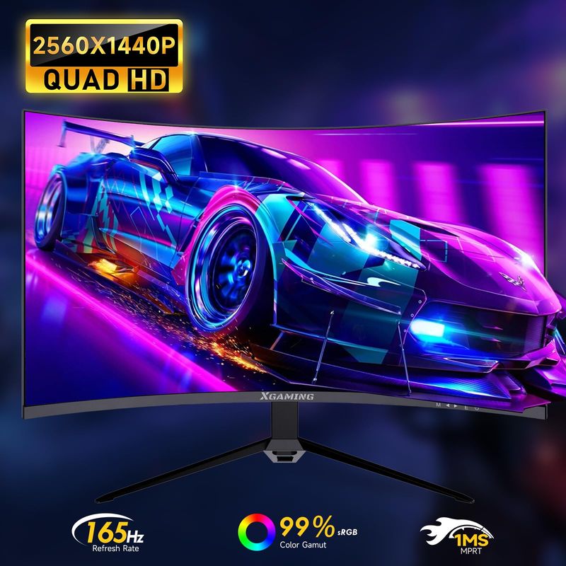 Monitor curvo de 27 pulgadas 2K 165Hz 1500R, QHD 2560 x 1440p pantalla de computadora para juegos,