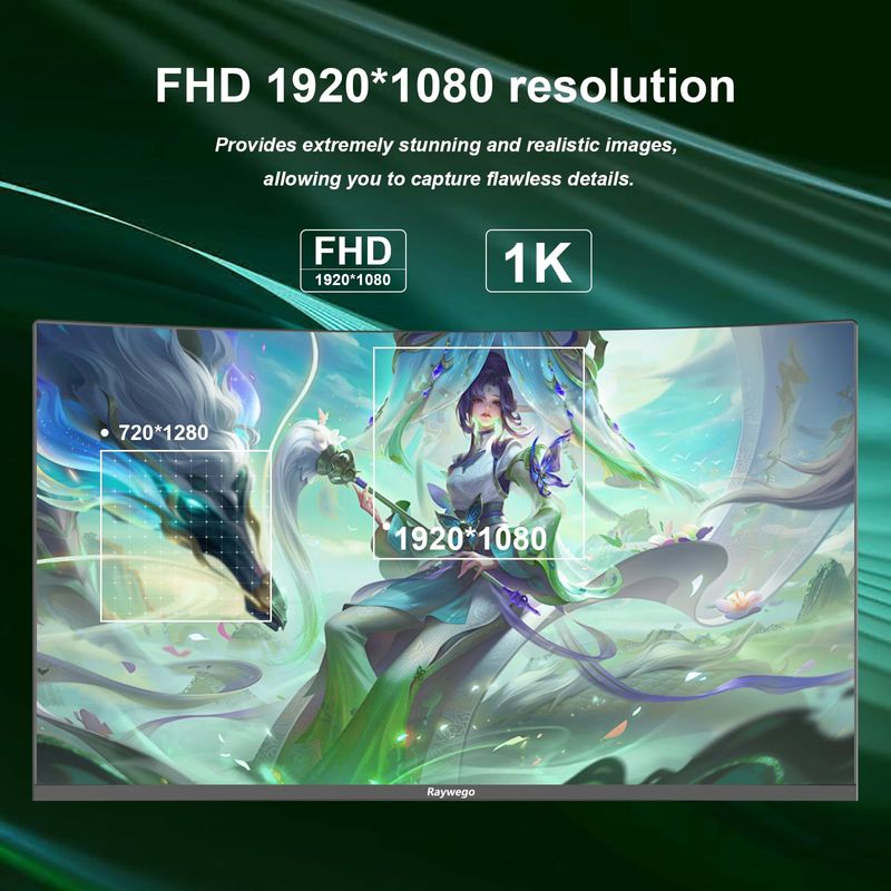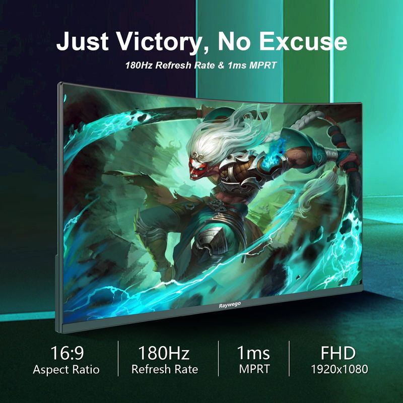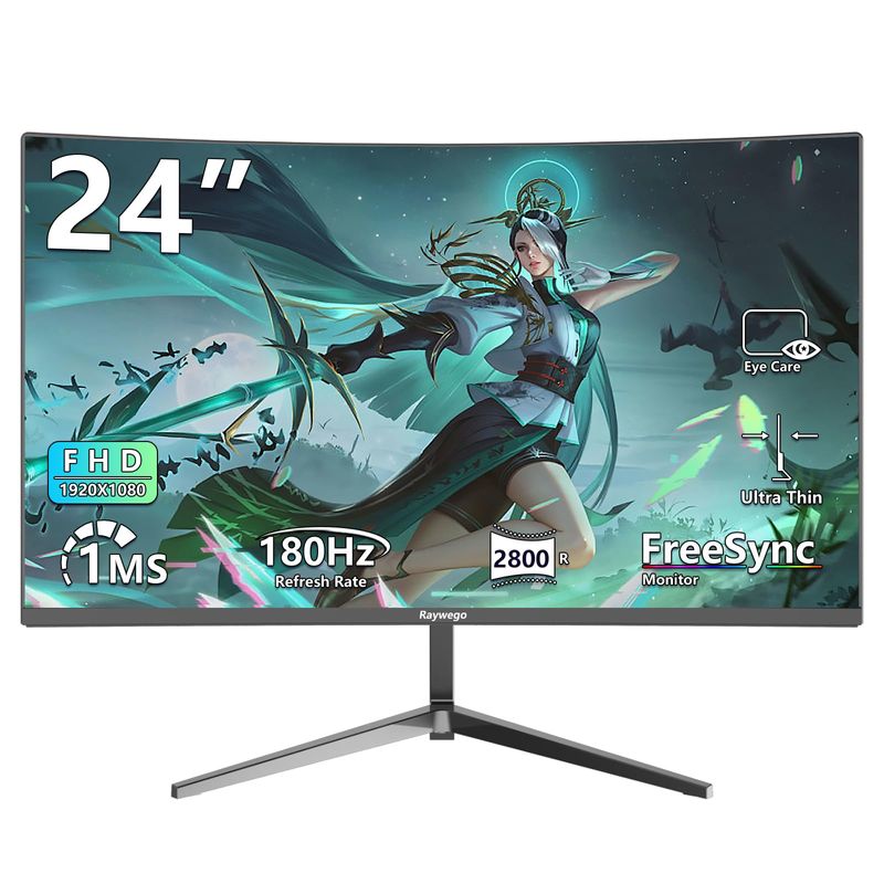 Monitor curvo para juegos de 24 pulgadas, 180 Hz, FHD1080P, sin marco, para el cuidado de los ojos,